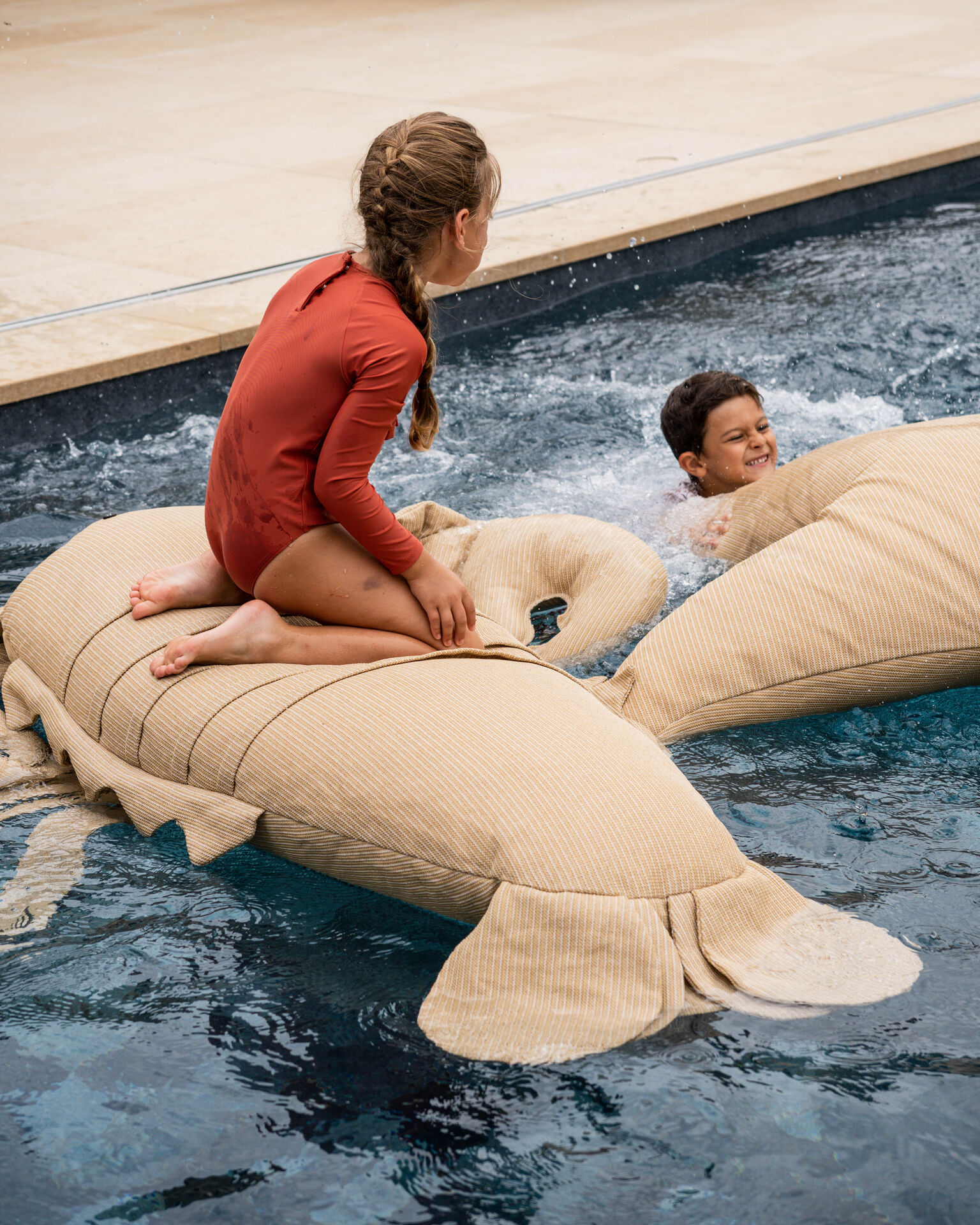 L’étanchéité de la piscine a été soigneusement réalisée avec un PVC armé à l’imitation pierre de Bali, insufflant une touche d’exotisme et créant une ambiance raffinée et relaxante.